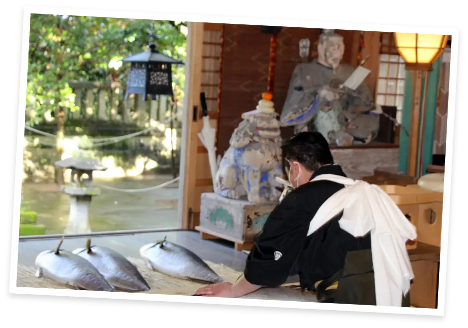 The New Year in Imizu begins with the Buriwake Shinji ritual (鰤分け神事), held to pray for a bountiful catch and good health. This is also the peak season for winter yellowtail, offering a solemn yet powerful atmosphere unique to a winter port town.