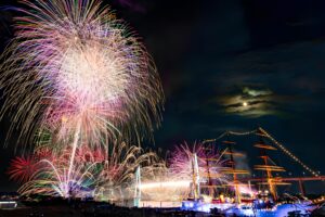 The Toyama Shinko Fireworks Festival (富山新港花火大会), a traditional event dating back to the Edo period, ushers in the height of summer in this port town. Fireworks launched over the sea and night sky create a truly spectacular sight.