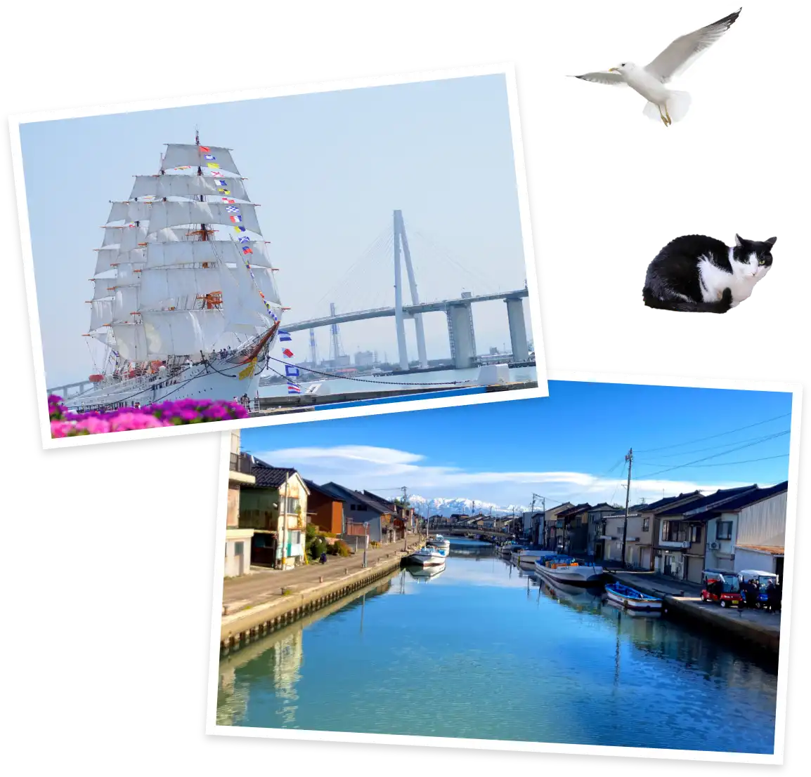 Along the shores of Imizu, facing Toyama Bay, vast natural beauty and everyday life come together. From Kaiwomaru Park, symbolized by the elegant sailing ship Kaiwomaru, to the Uchikawa area, where the charm of a traditional fishing town lives on, this is the place to start your journey through Imizu.