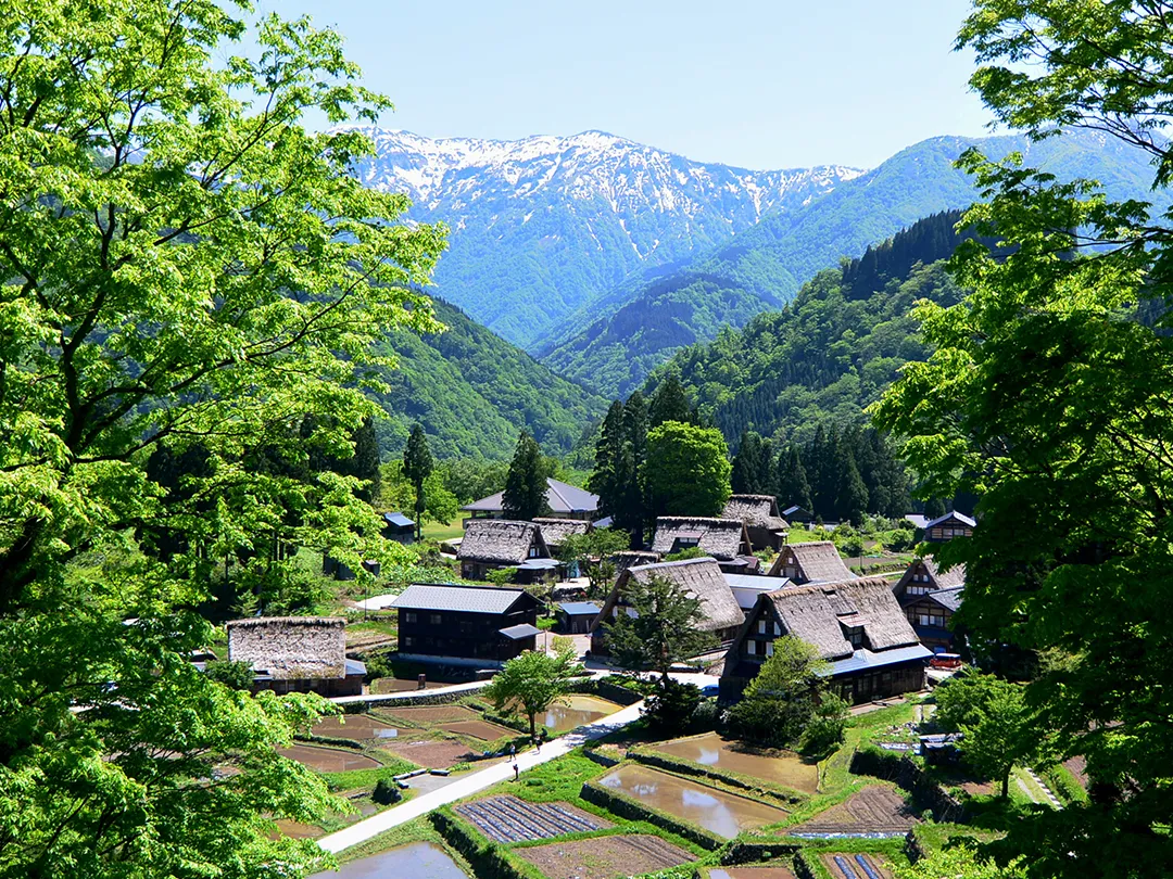 また内川では、ノスタルジックな港町の町並みと立山連峰の共演も訪れる人々を魅了します。さらに足を延ばせば、海越しに3000m級の山々を望む絶景で知られる万葉ゆかりの景勝地・雨晴海岸、四季折々の自然と迫力あふれる雪の大谷が楽しめる立山黒部アルペンルート、日本の原風景・合掌造り集落が今も残る世界遺産の五箇山合掌造り集落など、多彩な魅力が広がります。