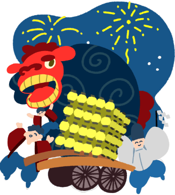 9月の海老江曳山まつり、次に10月のユネスコ無形文化遺産に登録されている新湊曳山祭、最後に大門曳山まつりと豪華絢爛な曳山が町内を引き廻ります。3週間の間にこれだけの曳山を曳き廻るところは他にありません。そのほかにも春と秋に市内各地域で行われる獅子舞など、地域の伝統が息づくお祭りがさかんです。