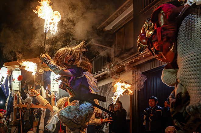 松明を用いた新湊の勇壮な獅子舞(春・秋開催)