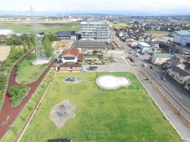射水市役所のすぐ隣にある大型の地区公園で、子どもから大人まで幅広く利用されている人気スポットです。