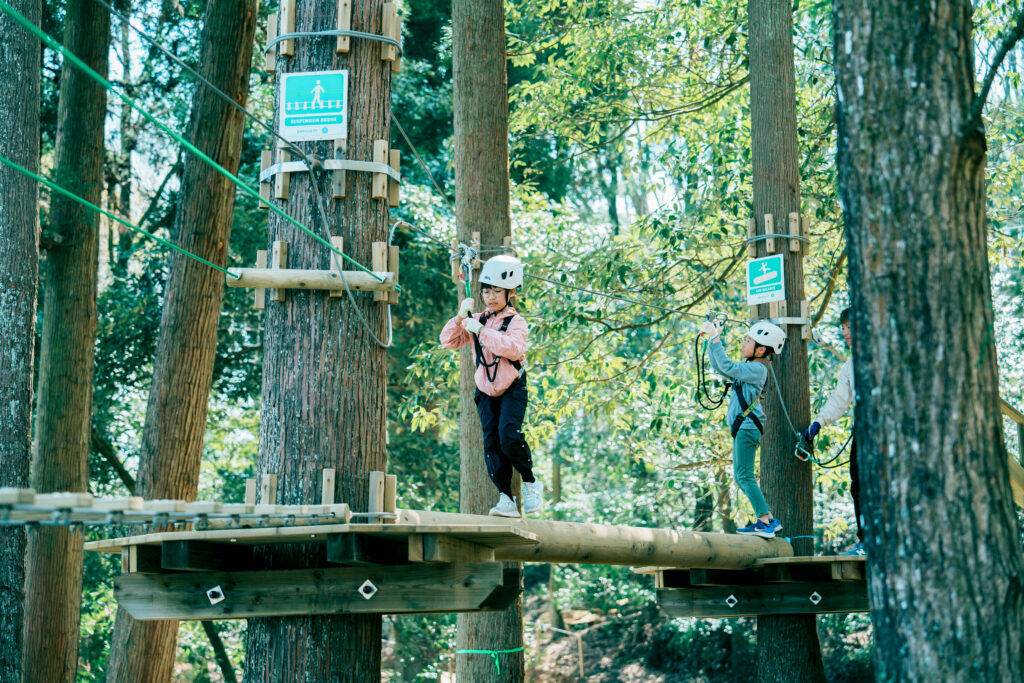 2025年4⽉OPEN︕ ⾃然共⽣型フィールドアスレチック施設です。 森のなかで⿃の声や⾵を感じながら、⼦どもから⼤⼈まで思いっきり体を動かして遊ぶことが出来ます。