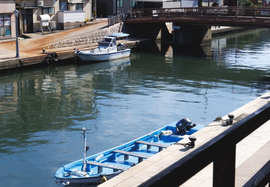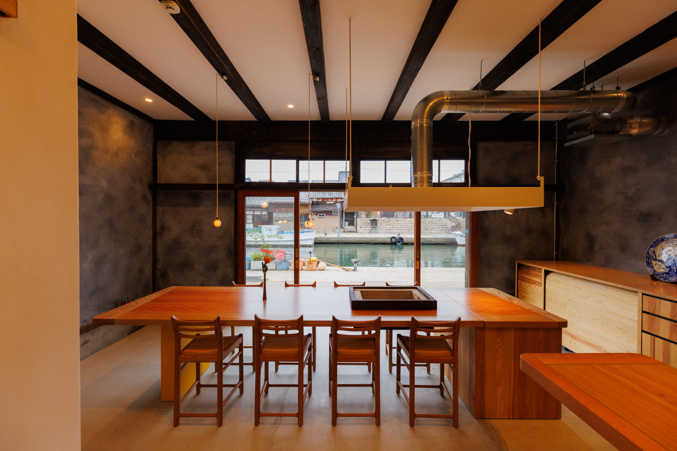 かつて漁で使用されていた漁具がインテリアとして部屋を彩り、開放感あふれるリビングルームの大きな窓からは内川の風景が広がります。