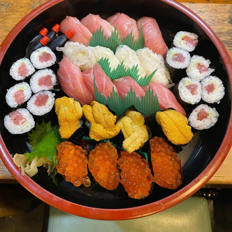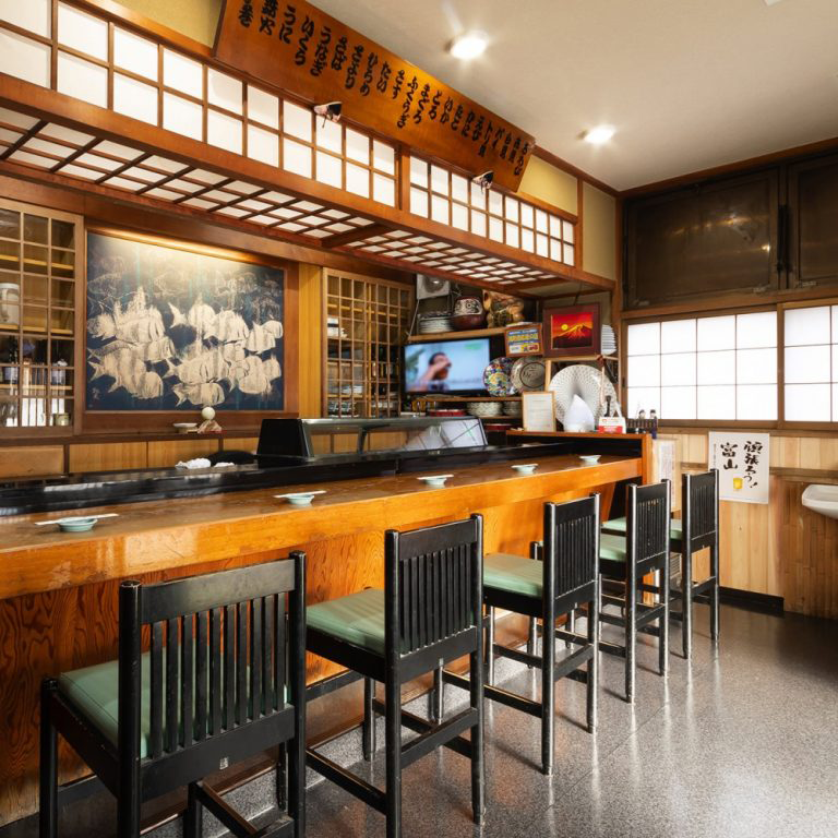 地元のお客さんに愛されているお店。熟練の職人が握る、地元の魚を使った寿司をお楽しみください。