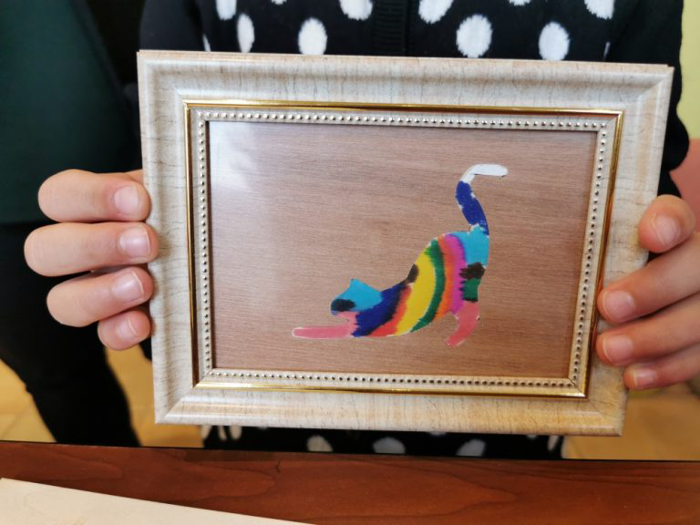 様々な色合いの木を糸のこぎりで切り取りはめ込んで作る、富山県指定伝統工芸「富山木象嵌(もくぞうがん)」。 永森家具では、2019年10月から木象嵌の常設展示を始め、2020年7月からは富山県で初の常設体験がスタートしました。 木象嵌の木の温かみ溢れるコースターなどを作ってみませんか。