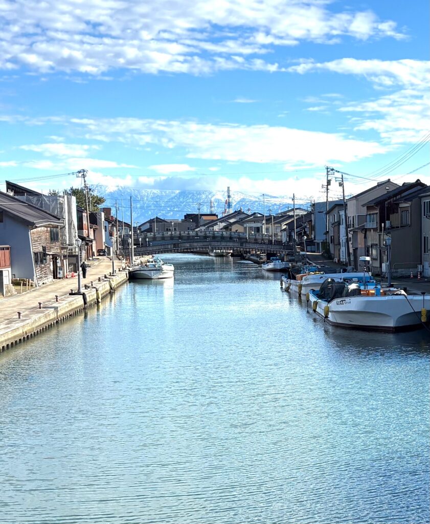 内川の「中の橋」や「新西橋」で撮影が行われました。主人公・文菜が富山の実家に帰省する第3話に登場しました。冬の澄んだ空気の中、立山連峰を背景に内川沿いを歩く日中のシーンや、街灯が川面をやさしく照らす夜のシーンも見どころです。