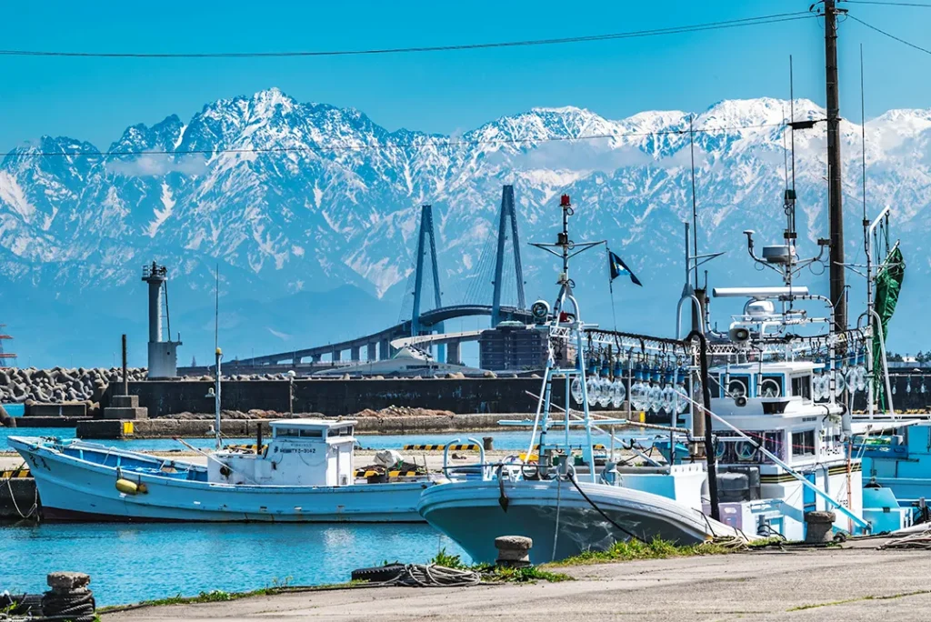 新湊大橋をはじめ、港町ならではの開放感あふれる景色が広がる海まちエリア。富山湾と立山連峰のコントラストや、夕暮れに映える内川にかかる橋や漁港のシルエットは、映像作品に迫力と美しさを与えます。迫力ある新湊大橋や港の風景、そして雄大な自然が調和するこの地は、スケールの大きなシーンや印象的なカットを求める映像制作者にとって格好の舞台です。