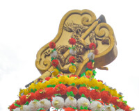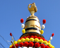昼の花山の装飾である、曳山上部を覆う花傘。各町で手作りされており、竹枝を垂下させて傘状になっている。