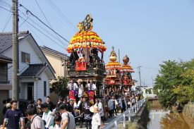 海老江加茂神社の秋季祭礼。3本の曳山が町中を練り廻ります。からくり人形が自慢。