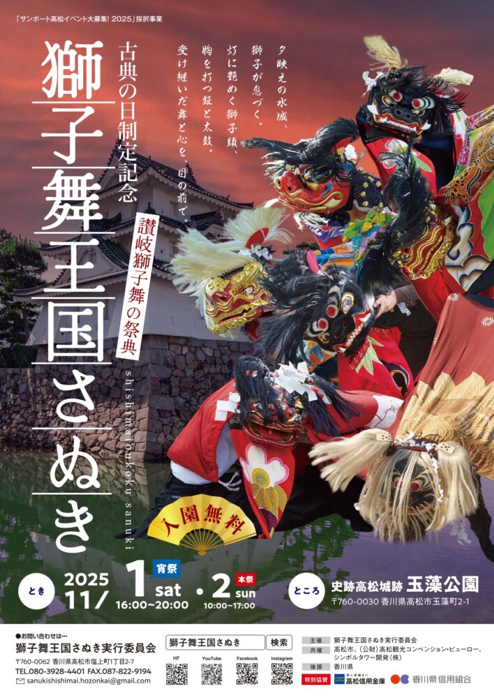 演舞スケジュールやイベントなどの詳細は、獅子舞王国さぬき2025ウェブサイトよりご確認ください。
