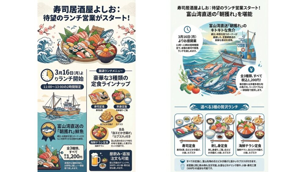 11:00~13:00までの2時間限定。豪華な3種類の定食からお選びいただけます。