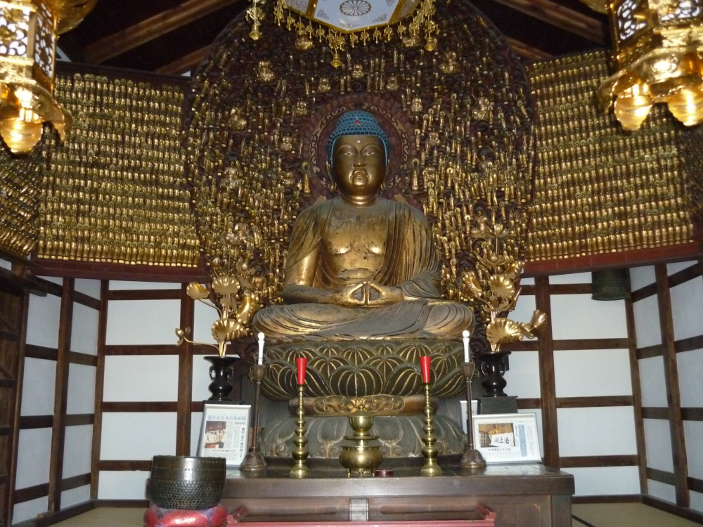 大仏の光背中に、十二光仏、九品の弥陀も祀られ、その荘厳は極楽浄土を現している。また、知恩院第71世萬誉顕道上人が開眼式を行い「法王殿」の額字を寄進された。