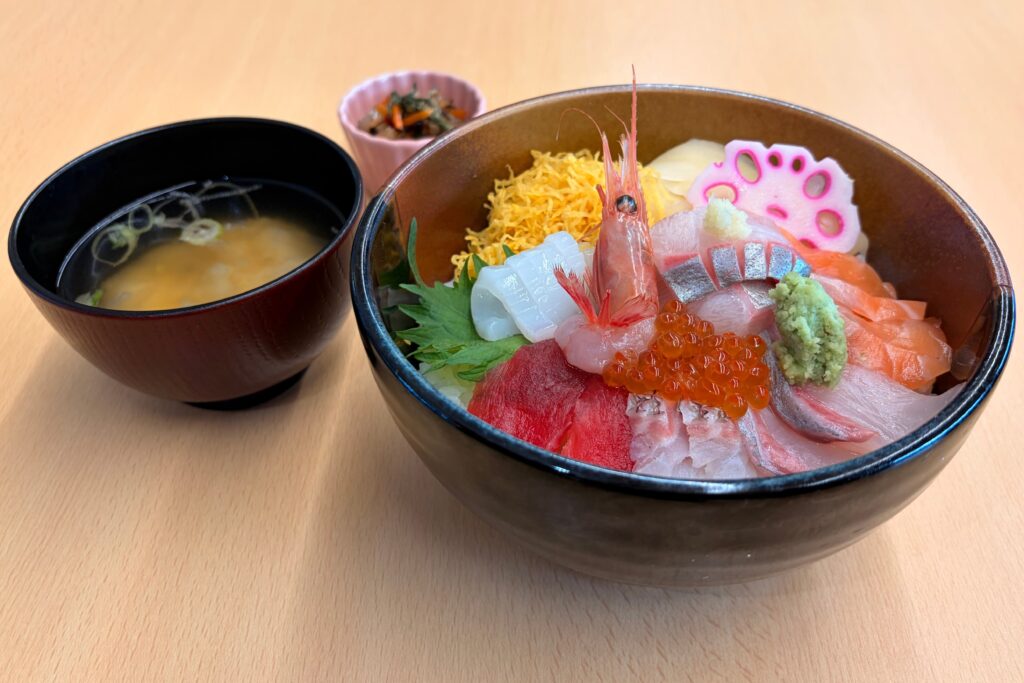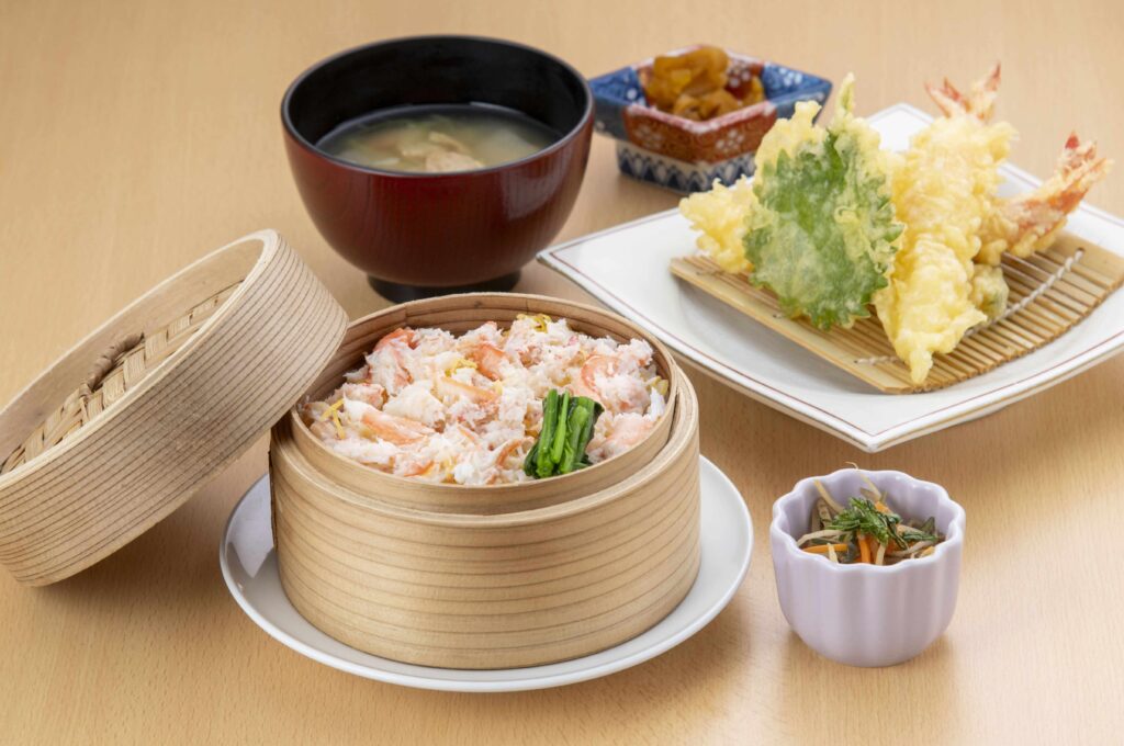 旬の食材を使った限定メニューもあり、カニの旨味たっぷりの「かにわっぱ飯定食(10月~2月末)」や、「白エビバーガー」が人気!