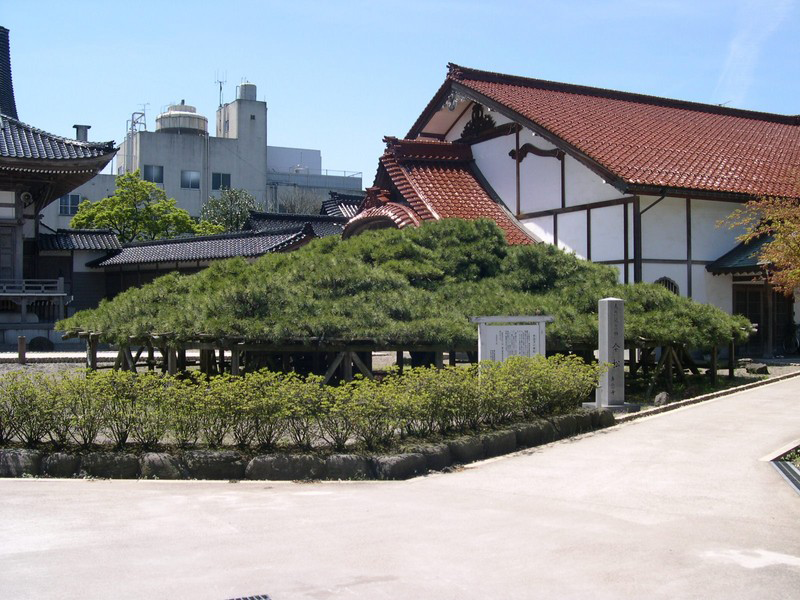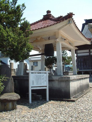 この寺の庭には、「傘松」があります。大変大きく、黒松と赤松の雑種で、突然変異によって傘状になった全国的にも珍しいものです。「からかさ松」の俗称で親しまれています。(県指定天然記念物) また、「銅鐘」は在銘の和鐘としては県内最古(1475年)と言われています。(県指定文化財)