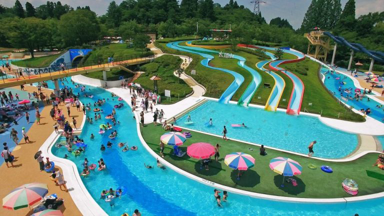 水と緑に囲まれた美しい自然の中に、日本海沿岸随一の内容を誇るレジャー用プールや広大な芝生、バーベキューコーナー、展望塔、富山県こどもみらい館などがあります。