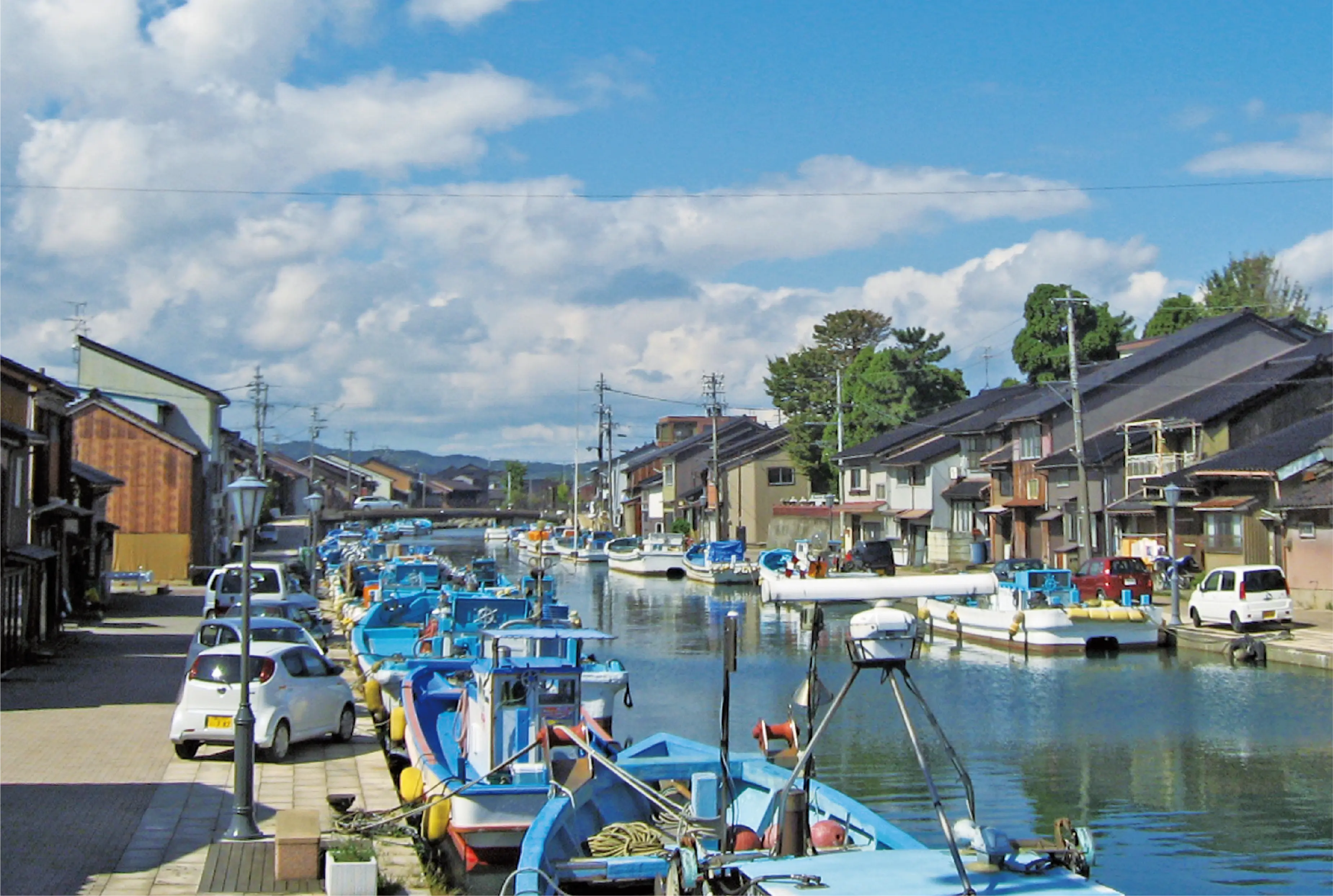 内川は、旧・新湊市の放生津地区を流れる川。千数百年前から現在に至るまで、地元の人々の生活とともにある「生きた川」です。「川と人が、これだけ近く生活している場所があったなんて!」… 初めて内川を見た人なら、この風景に、きっと衝撃を受けるはず。