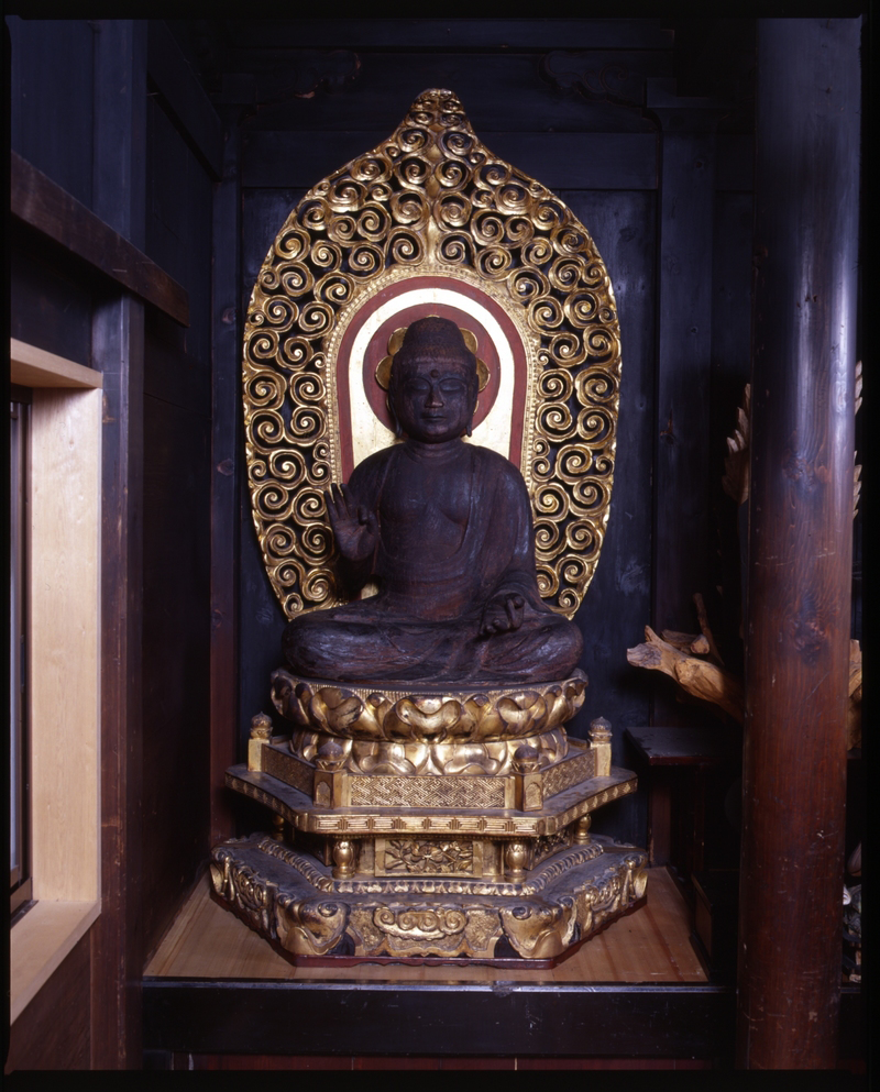 約1100年前に、北陸巡歴に際し空海(弘法大師)が開いたと言われています。 寺には、県指定文化財の仏像が3体あります。まず、杉材の一木造りの等身像の木造不動明王立像、ヒノキ材の一木造りの毘沙門天立像は憤怒の面相や躍動的な姿態から鎌倉期の特徴である剛健さを表しています。阿弥陀如来像の本像は、珍しい来迎形の坐像です。