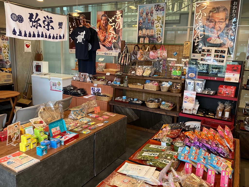 館内には、射水市の特産品を販売する「うまいもんショップ」をはじめ、毎年10月1日に新湊市街を巡行する豪華絢爛な曳山を常設展示する「曳山展示室」、内川の風情を楽しみながらお食事ができる「カフェレストラン」があります。