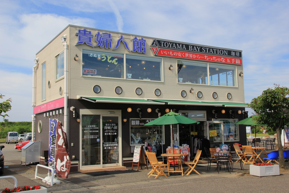 海王丸パーク内にあるお店です。1階は、海王丸グッズやお土産品等、玉手箱のような楽しいお店です。 2階は、世界でもっとも美しい湾クラブに加盟している富山湾を眺めながら、お茶とお食事が楽しめます。美しい風景を眺めながらの珈琲は格別です。