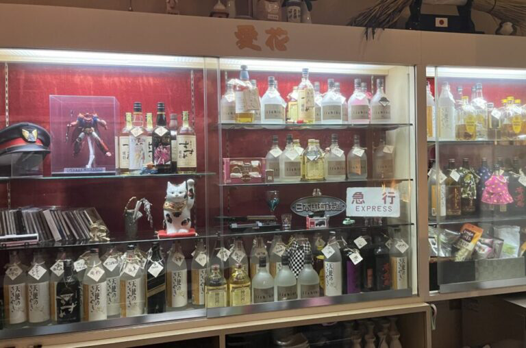 カウンターにズラリと並ぶ電車グッズのコレクションも必見です。