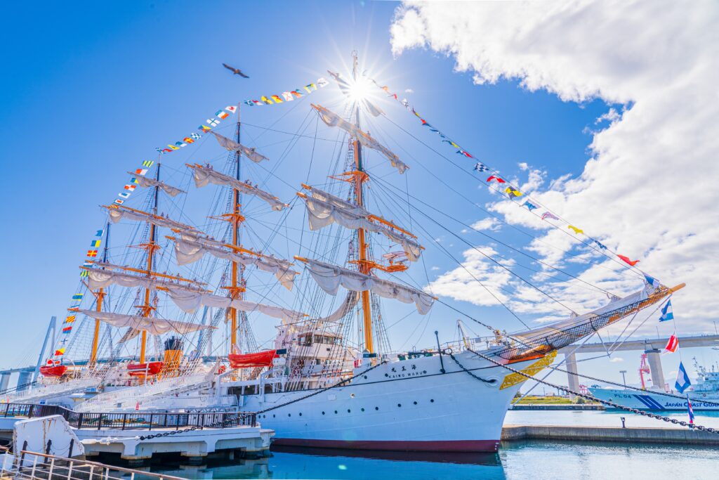 富山湾と帆船「海王丸」