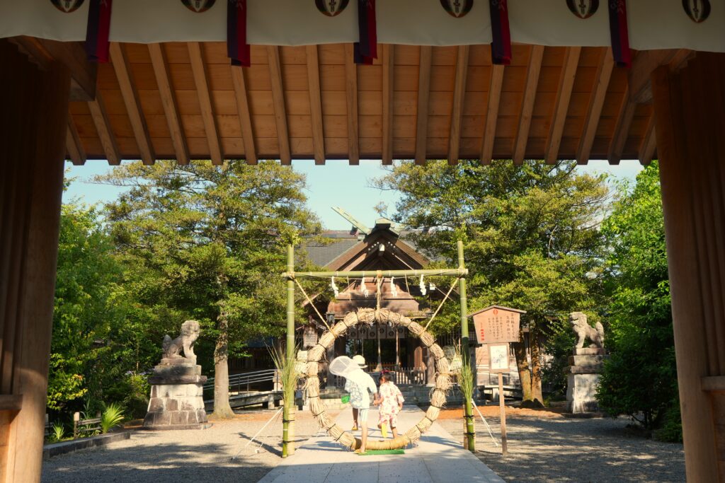 夏越の大祓には茅の輪が置かれます @櫛田神社