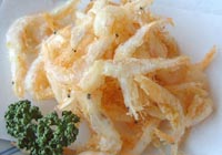 殻ごと揚げたシロエビは、サクサクの食感と濃厚な旨みが特徴。ビールのお供にもおすすめな人気メニューです。